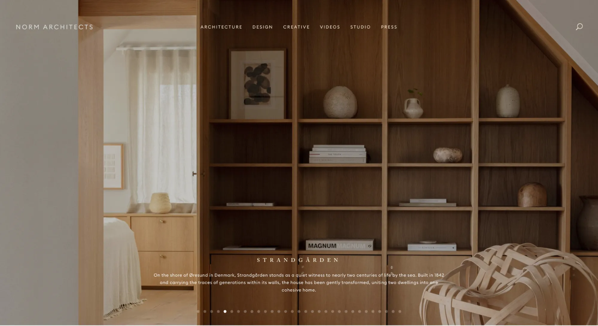 北欧のデザインスタジオ「Norm Architects」 の公式サイトは、この思想を完璧に体現しています。余白とミュートカラーを基調に情報を抑制し、視線の流れを静かに導くことでデジタル疲れを和らげる静寂なデザインを実現しています。