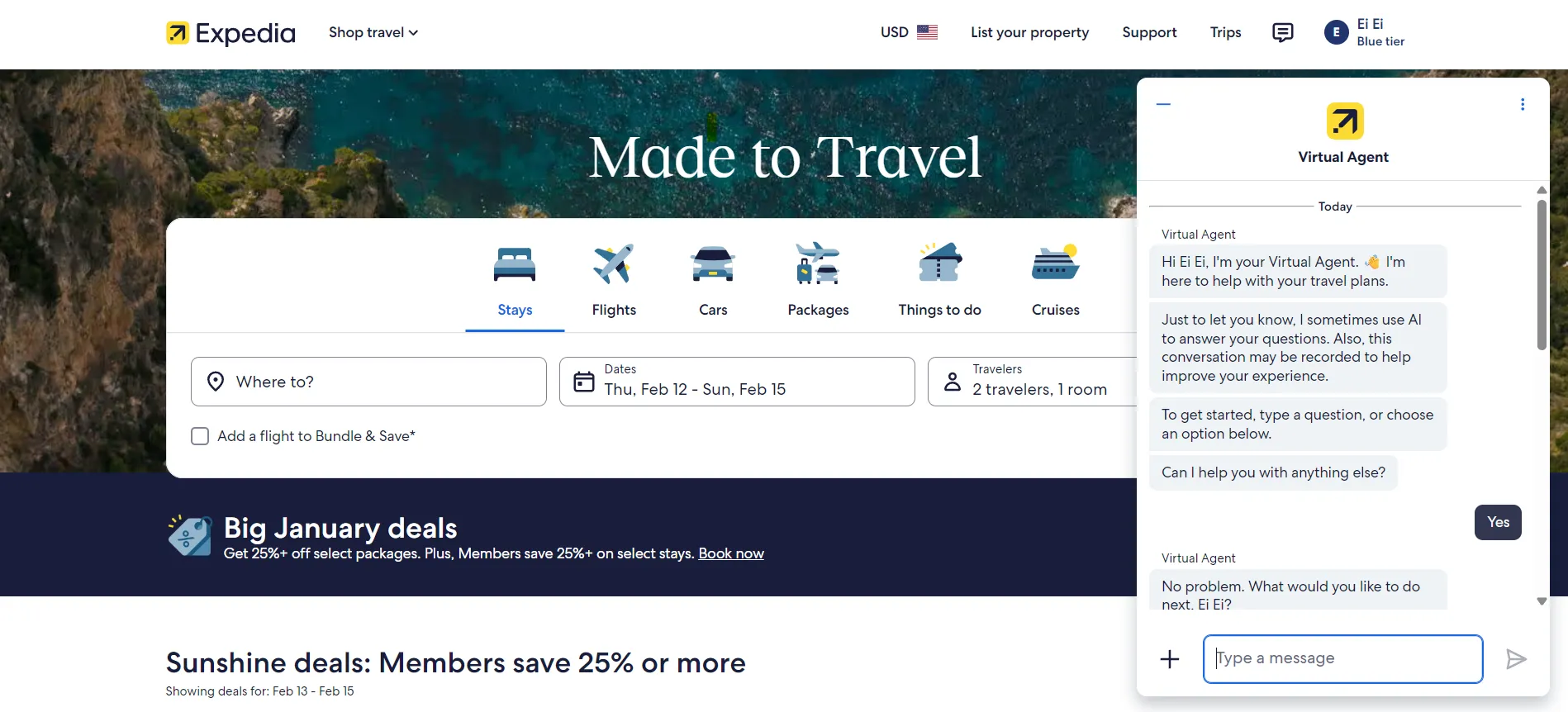 Expediaは自社サイトにChatGPTを統合し、サイト上でユーザーの旅行計画作成から、飛行機・ホテルの比較、そして予約に至るまでのプロセスを、全てチャットだけで完結させています。たとえば「12月に家族でパリに行きたい」と話しかけるだけで、AIがホテルやフライト、現地でのアクティビティまでを網羅的に提案してくれます。さらに、その会話の流れから離脱することなく直接予約へ進めることができるため、「検索して、比較して、予約する」という従来の手間を、チャットという1つの窓口に集約した画期的な事例と言えるでしょう。。