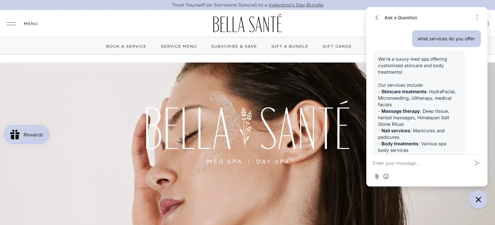 米国でスパ・ウェルネス施設を展開するBella Santeでは、施術メニューや営業時間に関する日々の問い合わせ対応にチャットボットを活用しています。これにより24時間の即時対応が可能になっただけでなく、予約ページへのスムーズな誘導やギフトカードの販売促進といった営業活動も自動化。フロントデスクを悩ませていた電話対応の負担を和らげつつ、着実に売上を伸ばすという一石二鳥の成果を上げています。