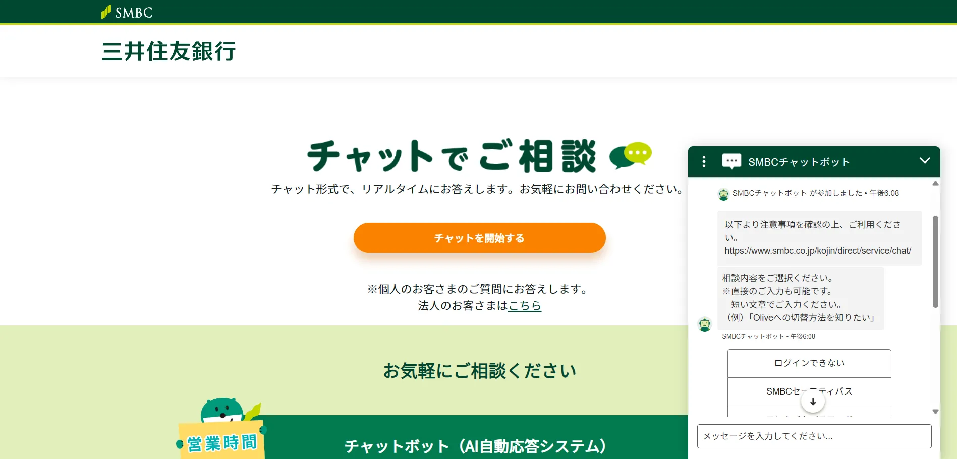 三井住友銀行|ネットバンキングの手続きをチャットで完結