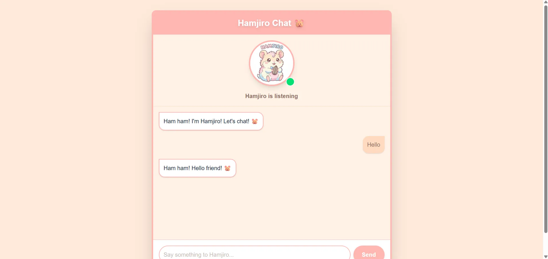 | React+Vite+Tailwindで、かわいいハムスターが話すチャットアプリを作って。ハムスターの名前は「ハム次郎」で。 |