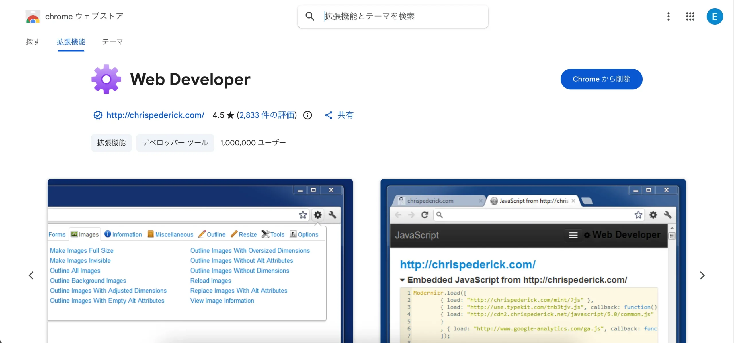 CSSの無効化や各種情報の表示など、デバッグに役立つ機能がひと通りそろった定番拡張機能です。