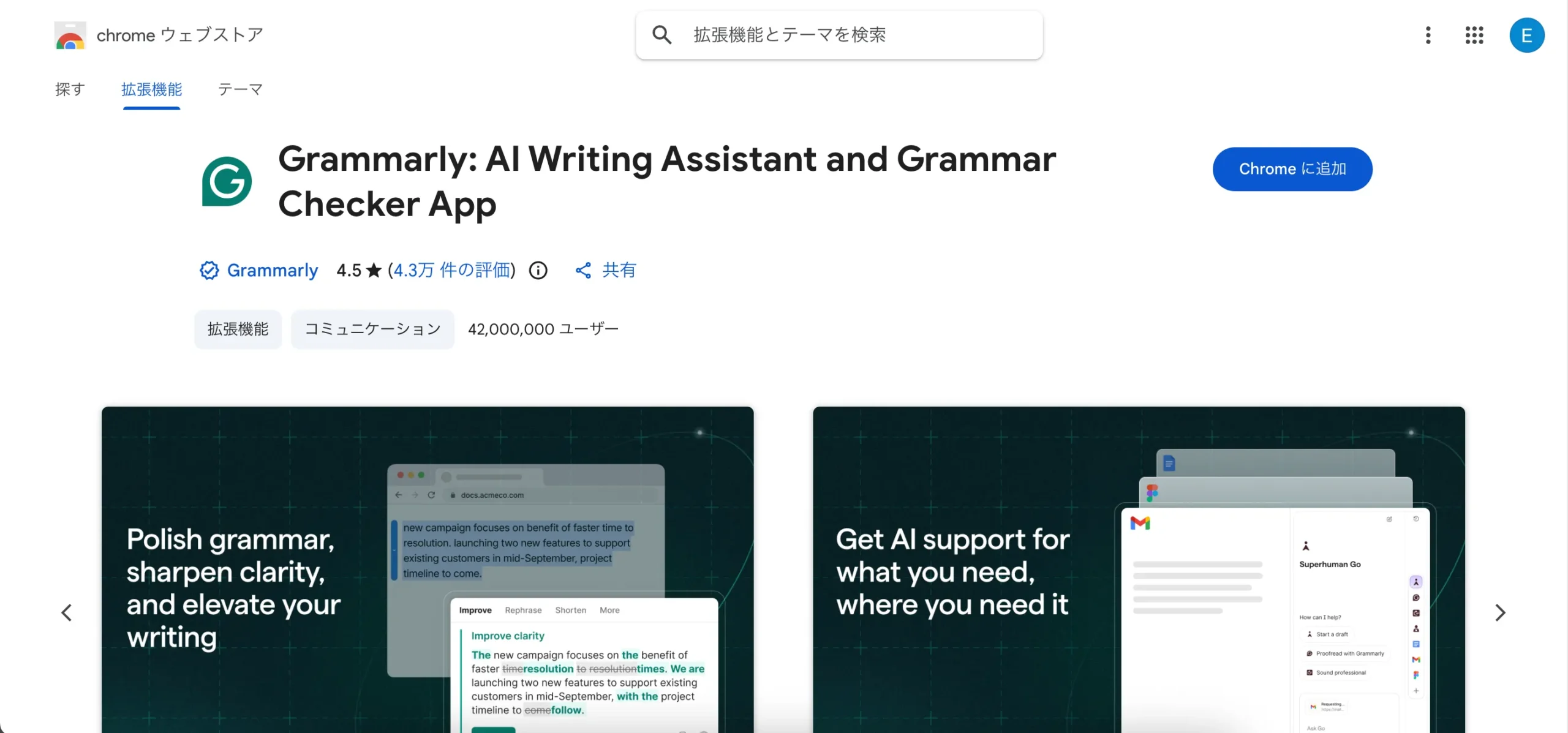 こちらは、英語のドキュメントやコメントを入力している最中に、文法やスペルミスをリアルタイムで検知・修正してくれるAIツールです。