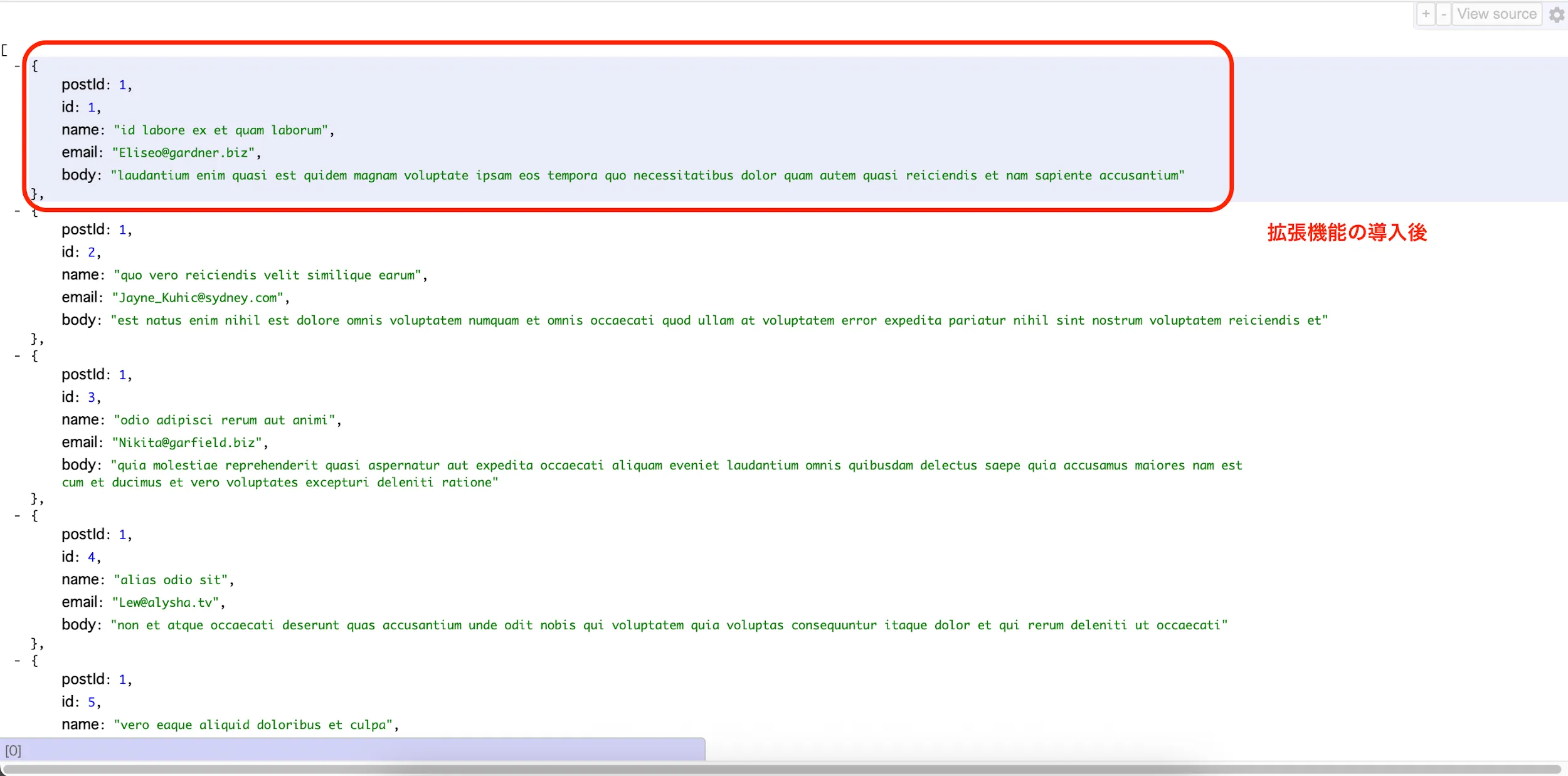 例えば、limit や skip といったパラメータもそのまま反映されているため、値を書き換えて再送するのも簡単。面倒なコピーペ作業は一切不要です。