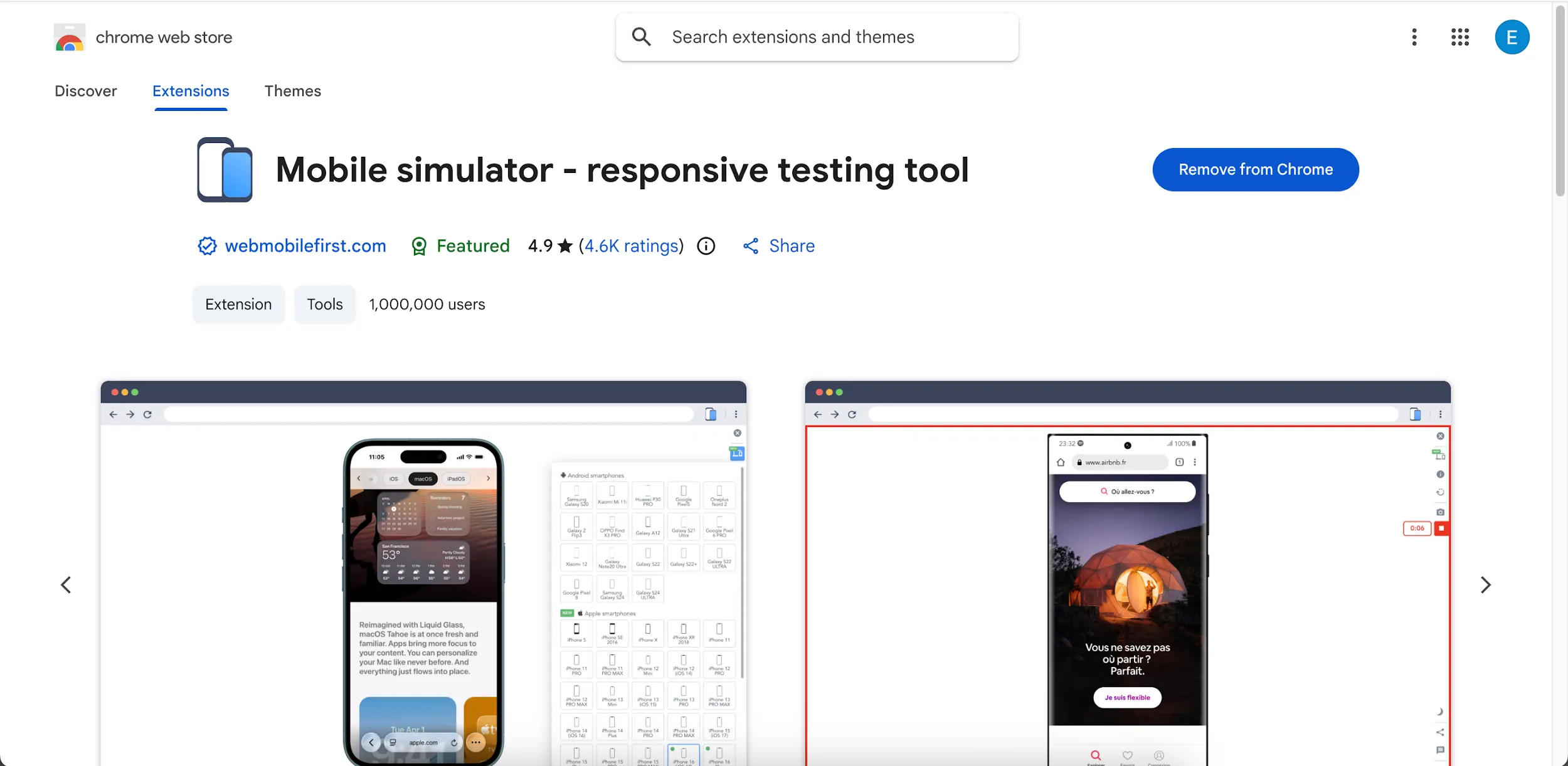 最新のiPhoneやAndroidなど、さまざまなモバイル端末の表示をPCブラウザ上で再現できる拡張機能です。