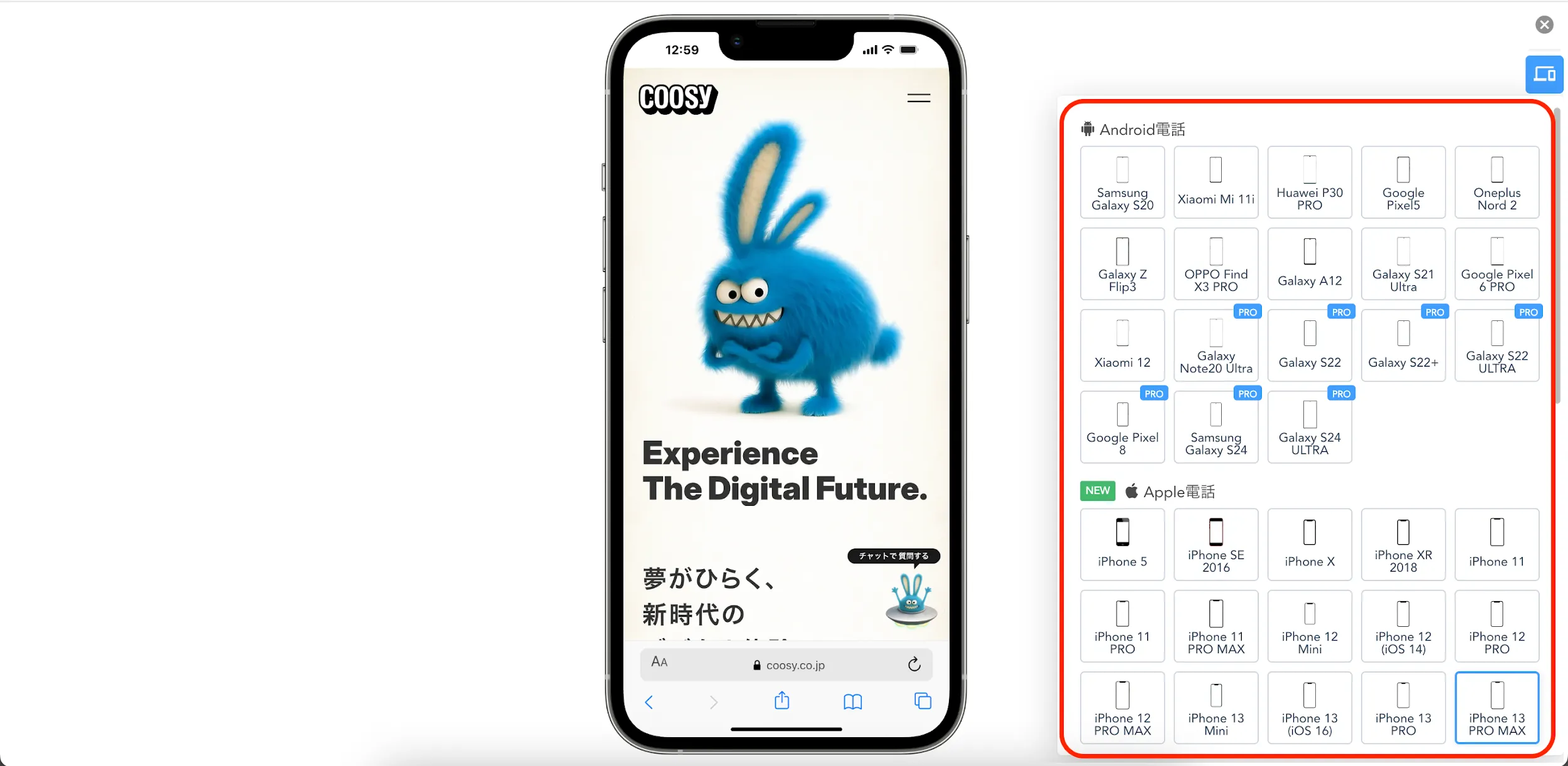 スマホでの見え方を確認するために、何度もブラウザの幅を変えたり、実機に持ち替えたりするのは大変ですが、このシミュレーターなら簡単に表示を確認することができ、レイアウトの崩れも早い段階で見つけられるので、手戻りの作業をぐんと減らせます。