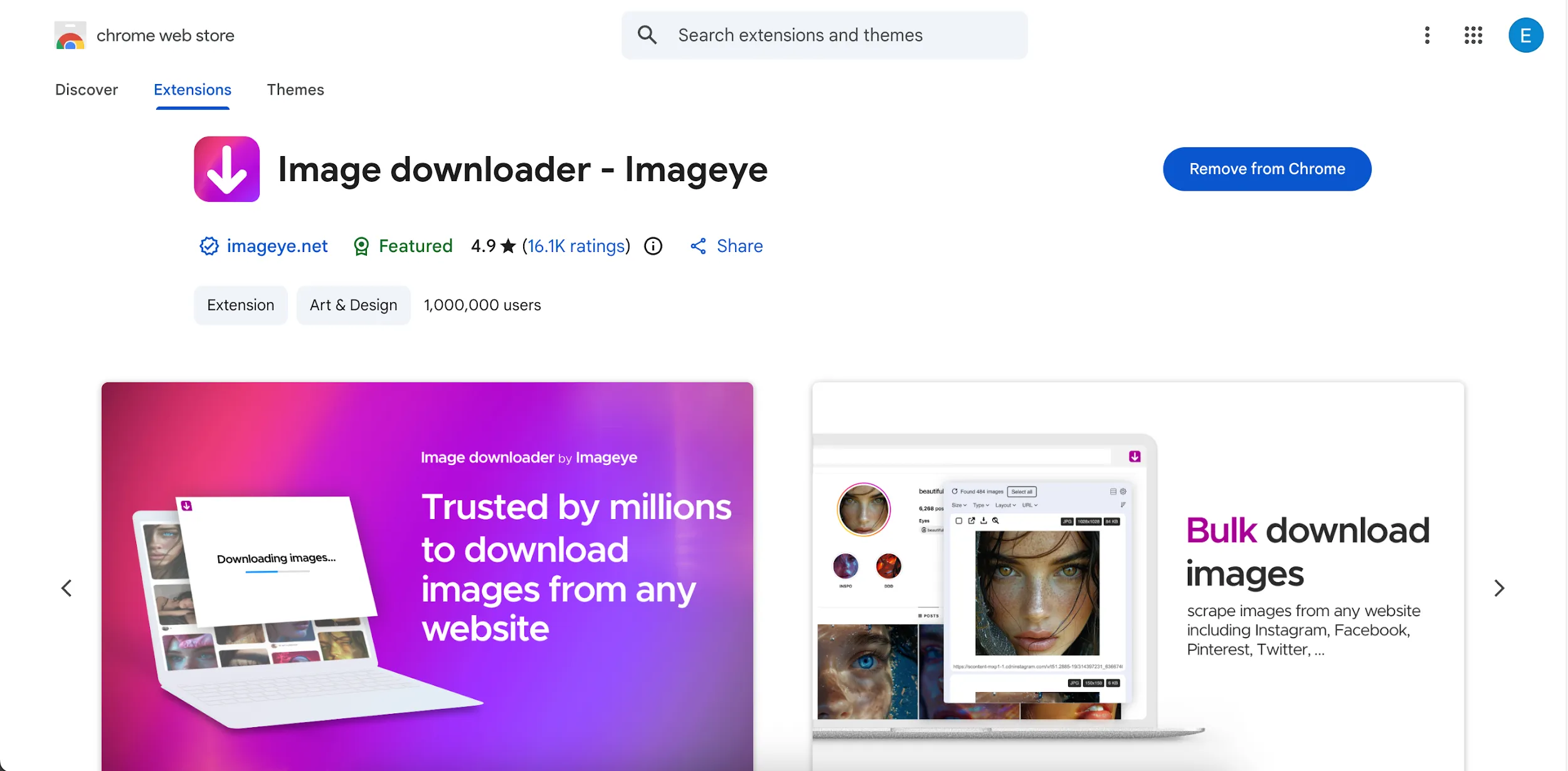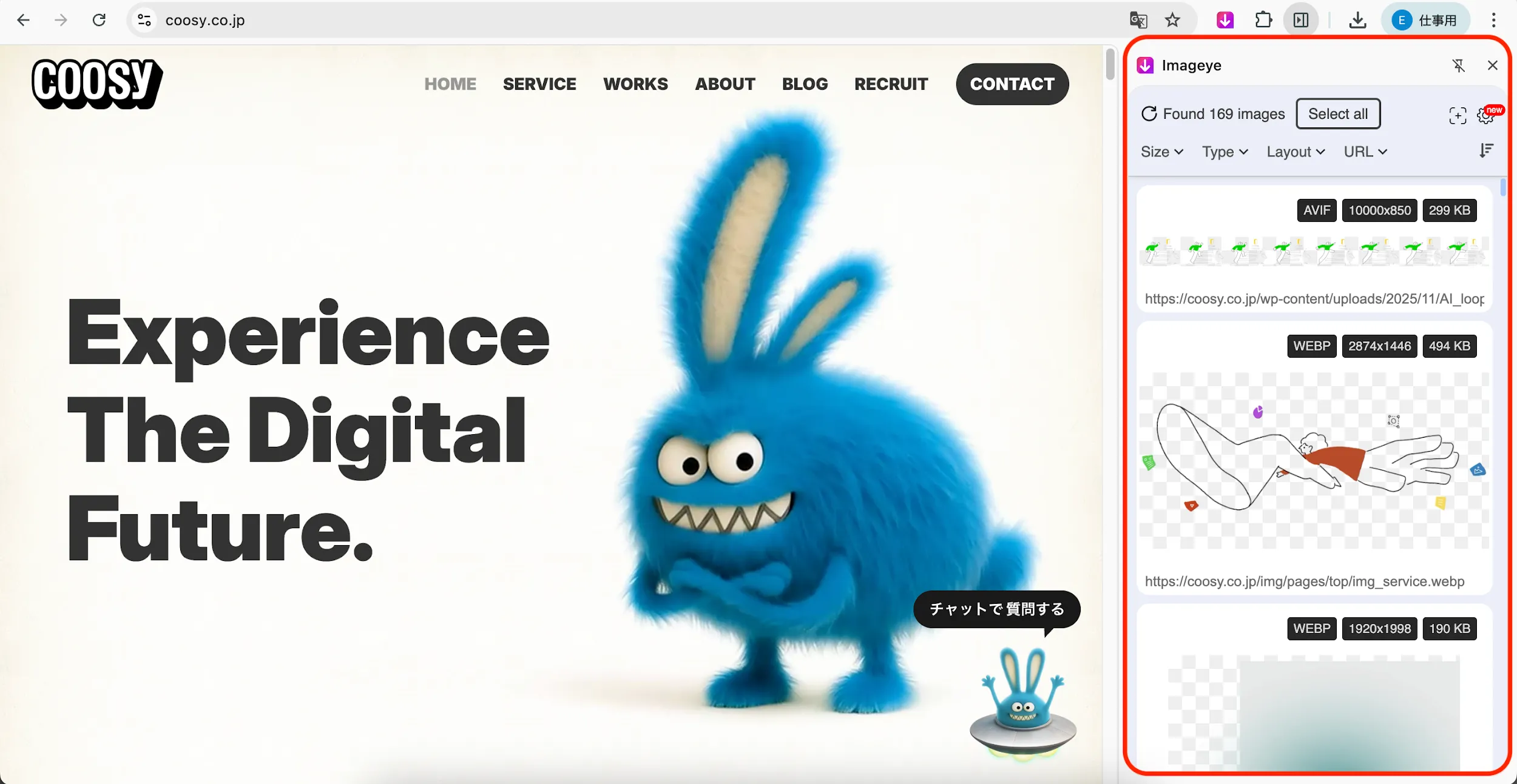 「古いサイトの写真をリニューアル後のサイトでも使いたいけれど、元データがどこにあるかわからない……」という時、このツールを使えばサイト上の画像を丸ごと回収できます。一枚ずつ右クリックで保存する手間をすべて省ける、かなり使い勝手の良い拡張機能です。