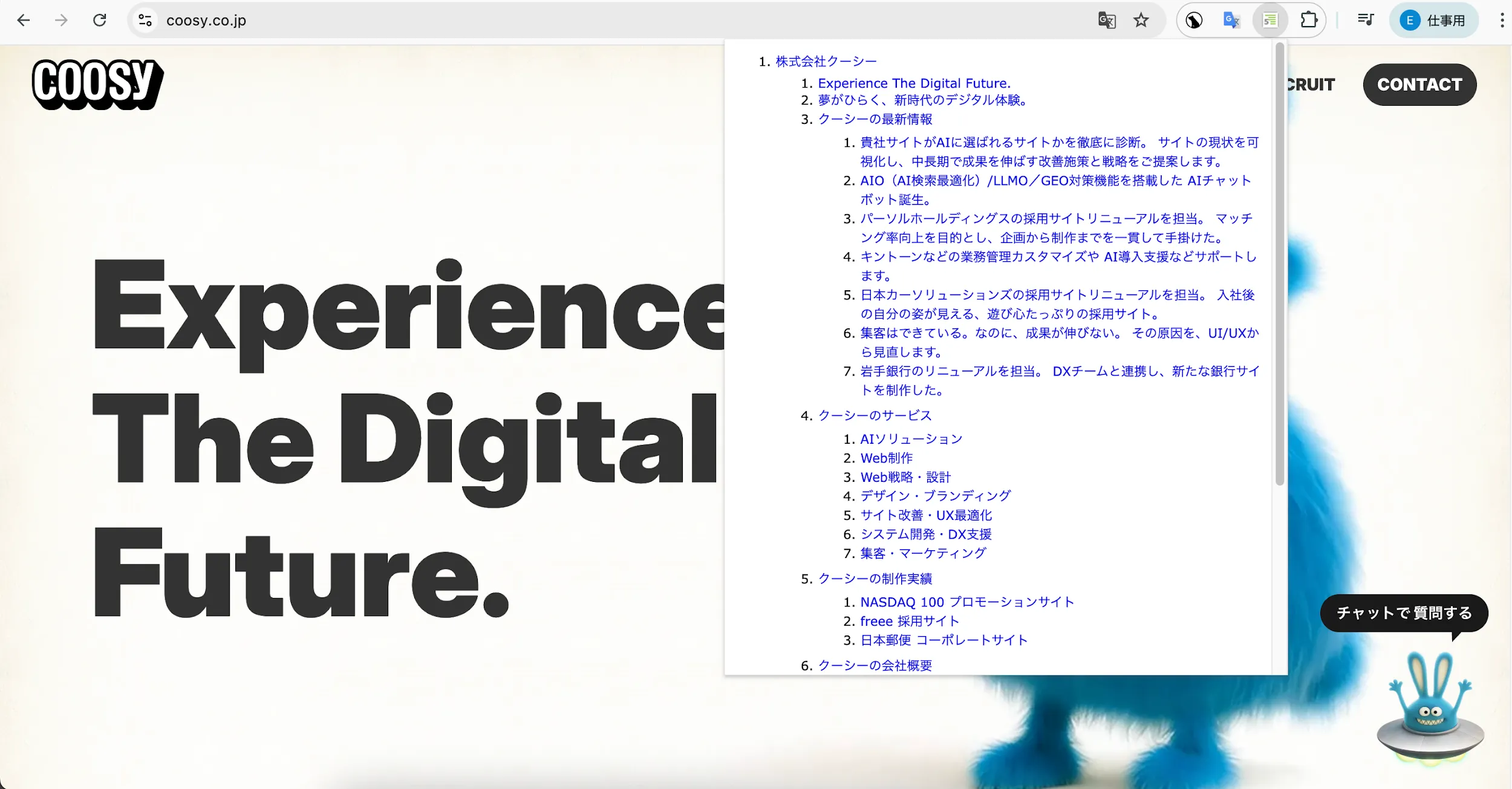 わざわざソースコードを上から下まで読み直さなくても、本の目次のようにサイトの構造をリスト化してくれるので、SEOに強い正しいHTMLが書けているかを、簡単かつ正確に確認できます。