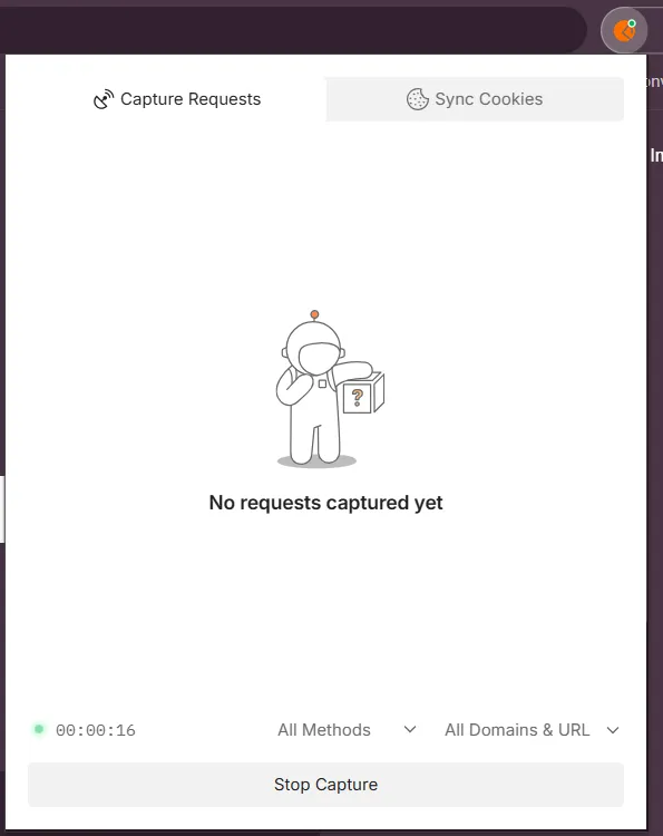 拡張機能を開き、トグルスイッチを「ON」にするだけでキャプチャが開始されます。