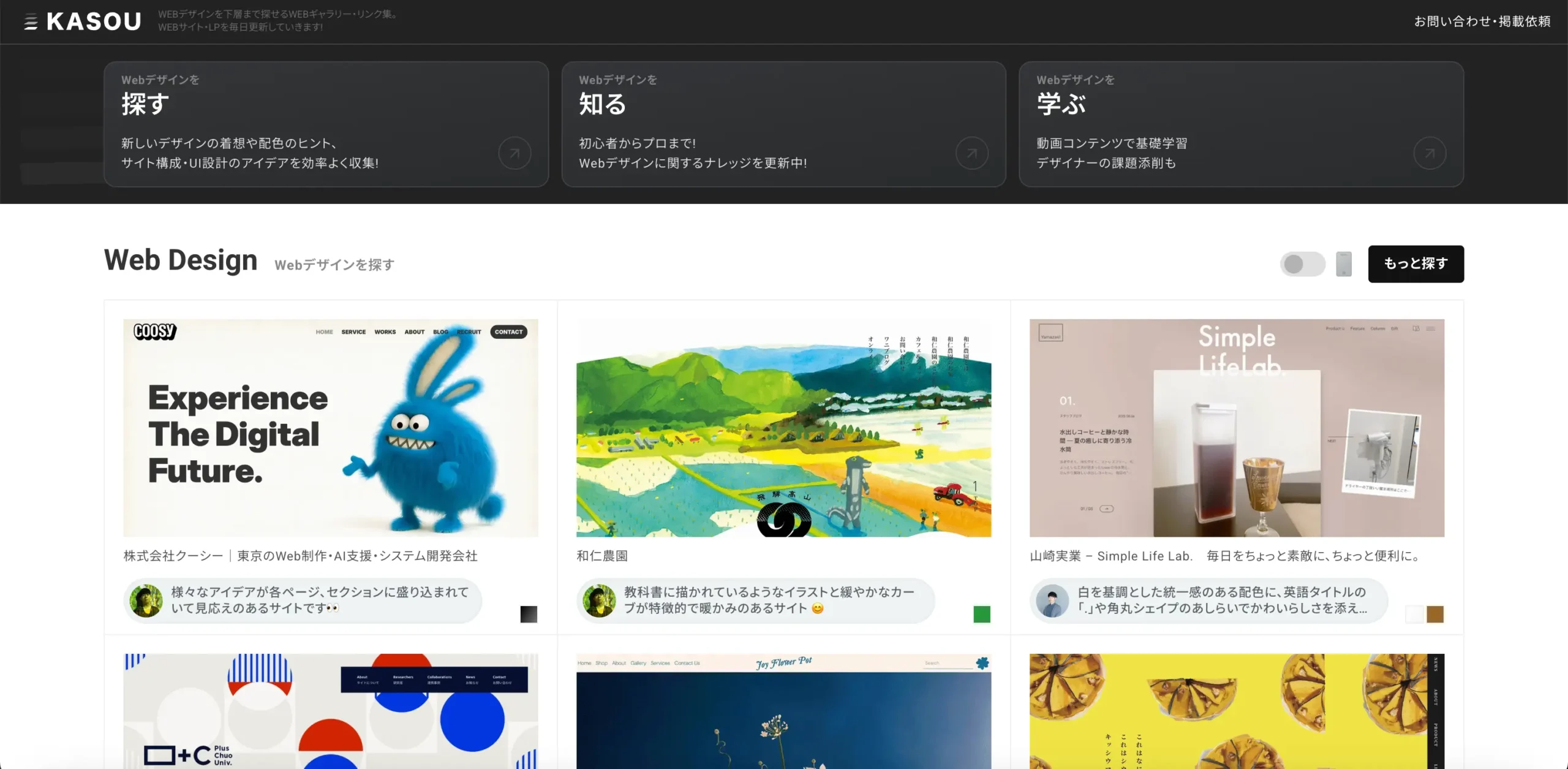 「KASOU」は、Webデザインの情報収集から基礎学習までを一元的に支援する学習型サービスです。