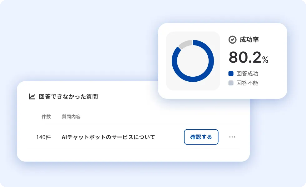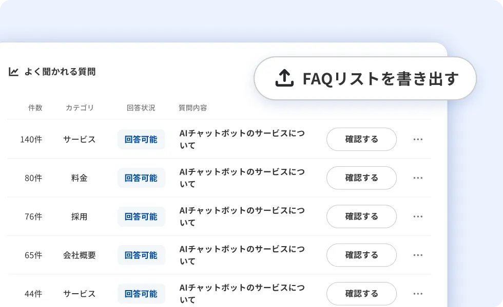 また、AIチャットボットが回答できないものはAIが質問リストとして出力し、よくある質問ページを改善できるようにいたします。