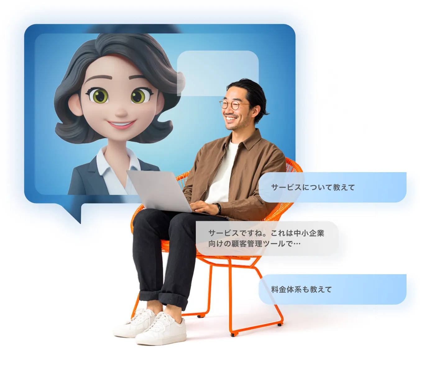 専門知識は不要です。貴社サイトのURLやお手持ちの資料(csvなど)を読み込ませるだけで、AIが情報を学習し、貴社専用のチャットボットが完成します。