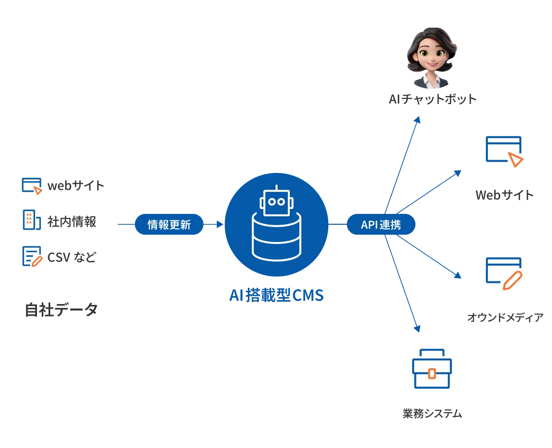 AI搭載型CMSにより、Webサイトの情報更新をするだけで、Webサイトが自ら学習 ・ 成長!