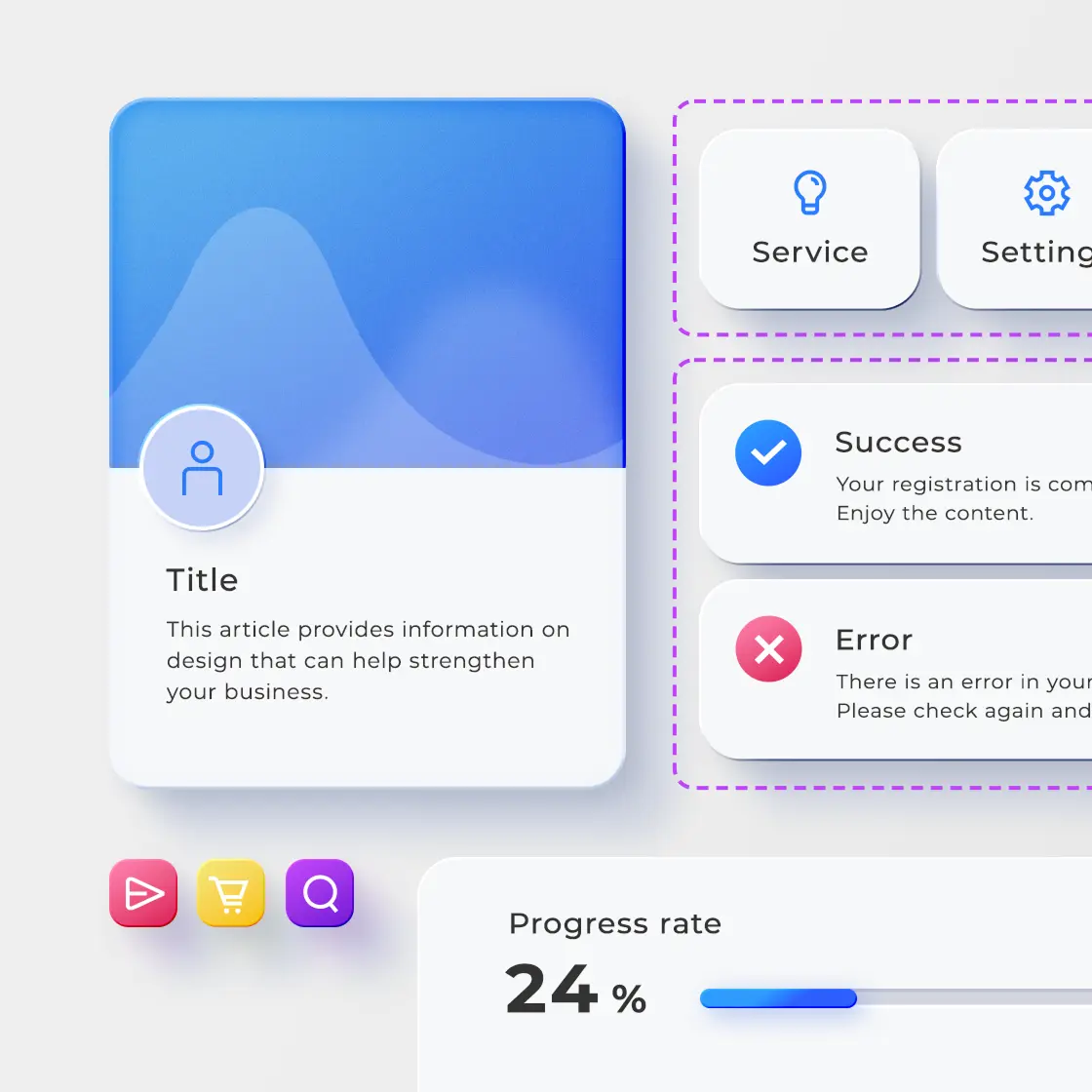 クーシーは単なるUI整理ではなく、ブランド価値・事業目的・顧客体験を軸にデザインシステムを構築します。MVV、CI・VI、表現トーンなど企業の根幹となるブランド要素を整理した上で、色・タイポグラフィ・コンポーネント設計まで一貫して体系化。デザインと事業戦略が乖離しないため、どの制作物においても“企業らしさ”を維持しながら、運用効率と品質向上を両立させることが可能です。